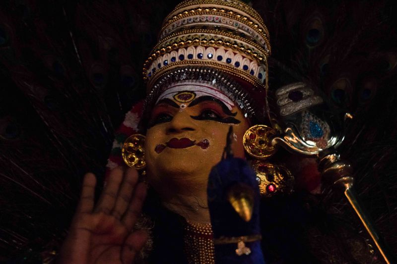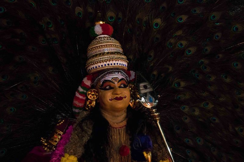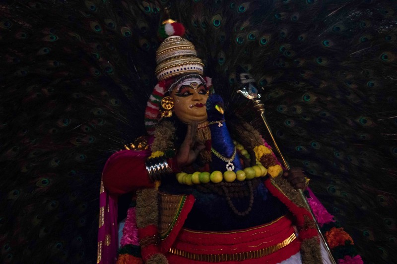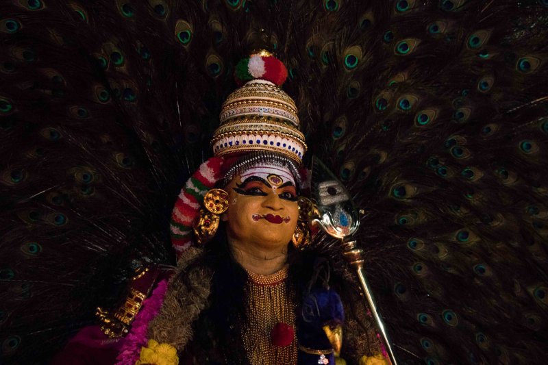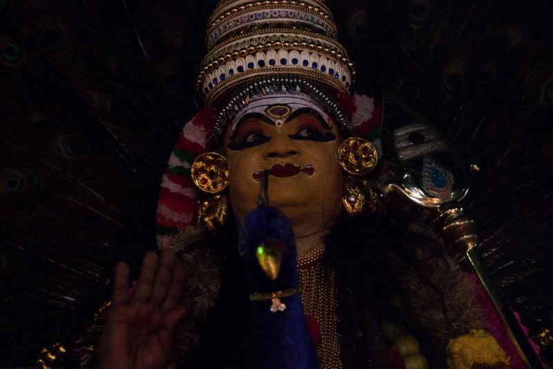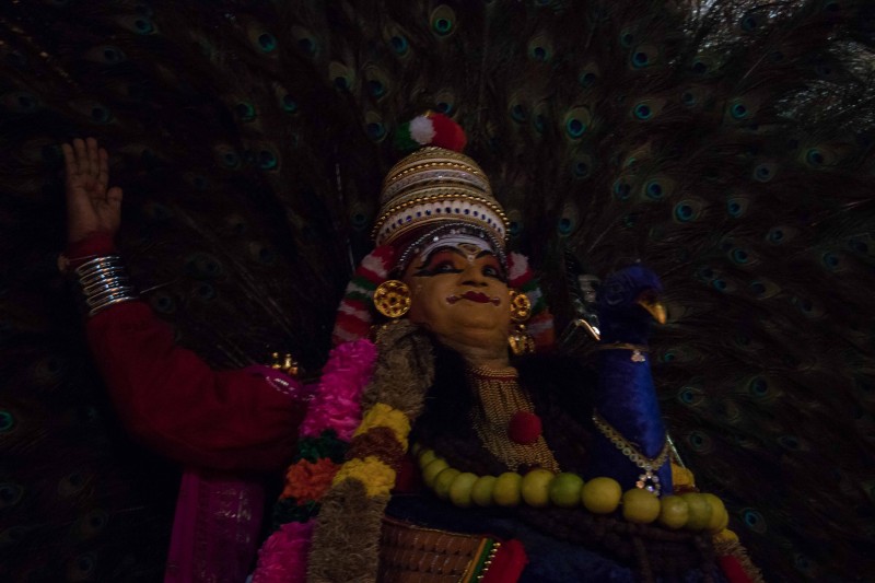 The people treat the artiste as equal to God. when he plays the role of Lord Murugan. By treating him like God they start to see blessing from him by lamp on paths through which he comes to perform on stage. In the earlier stage, people recognized Mayoor Nritham as a complete perfection of an art form, but nowadays, they view it merely as a performance for money.