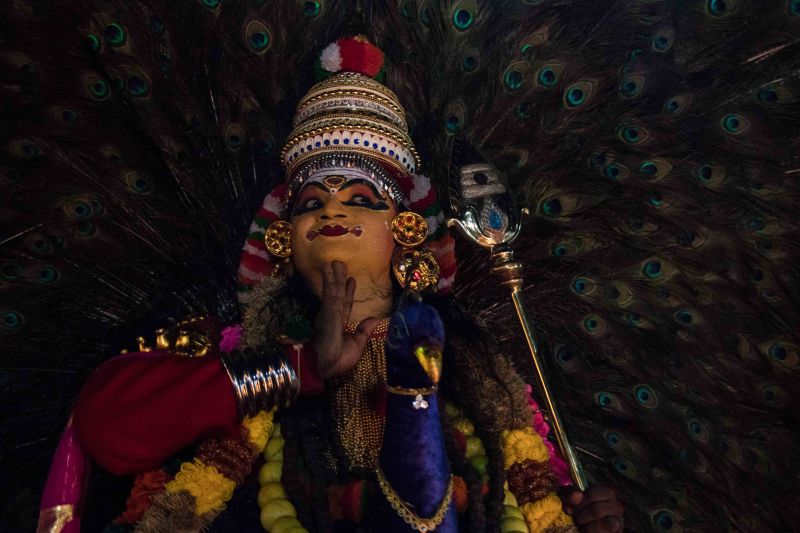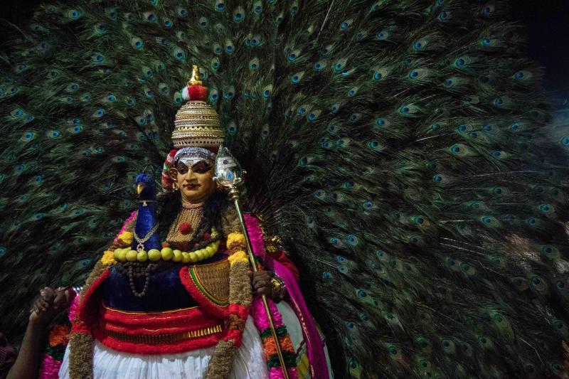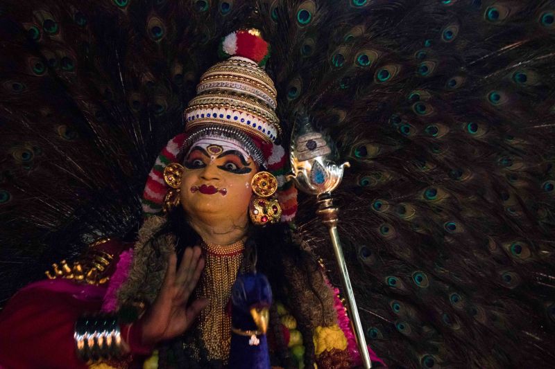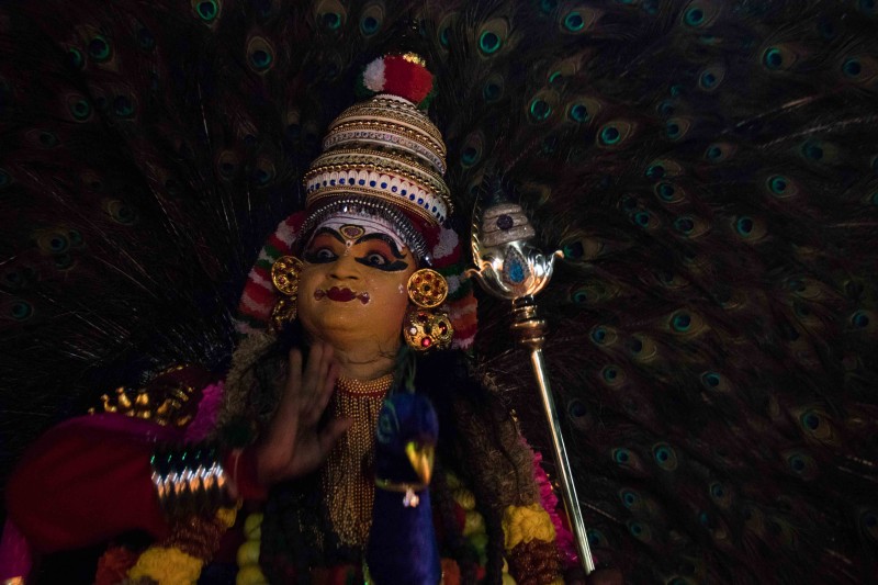 People regard Mayoora Nritham as one of the famous plays performed by an artist wearing makeup that resembles Lord Murugan seated on his beloved bird, the Peacock, as seen in Lord Murugan temples across India.
