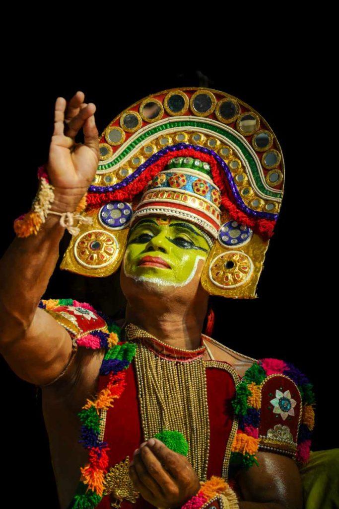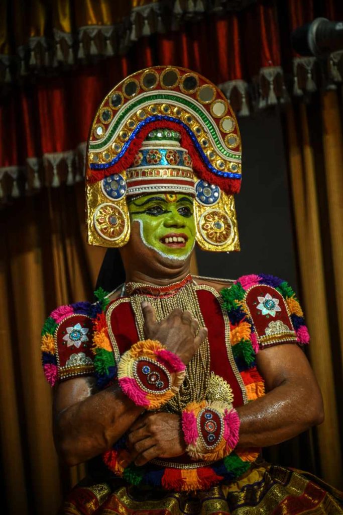 Ottamthullal face : The elaborate makeup and colour schemes employedin oWttamthullal.